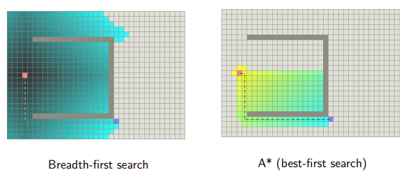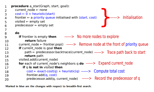 - Heuristic h(q): Estimated length of the path from the node q to the goal node.