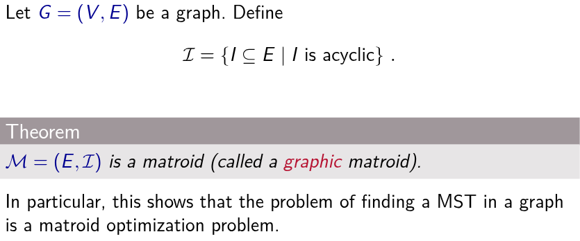 Warum ist das MST-Problem ein Matroid-Optimierungsproblem?