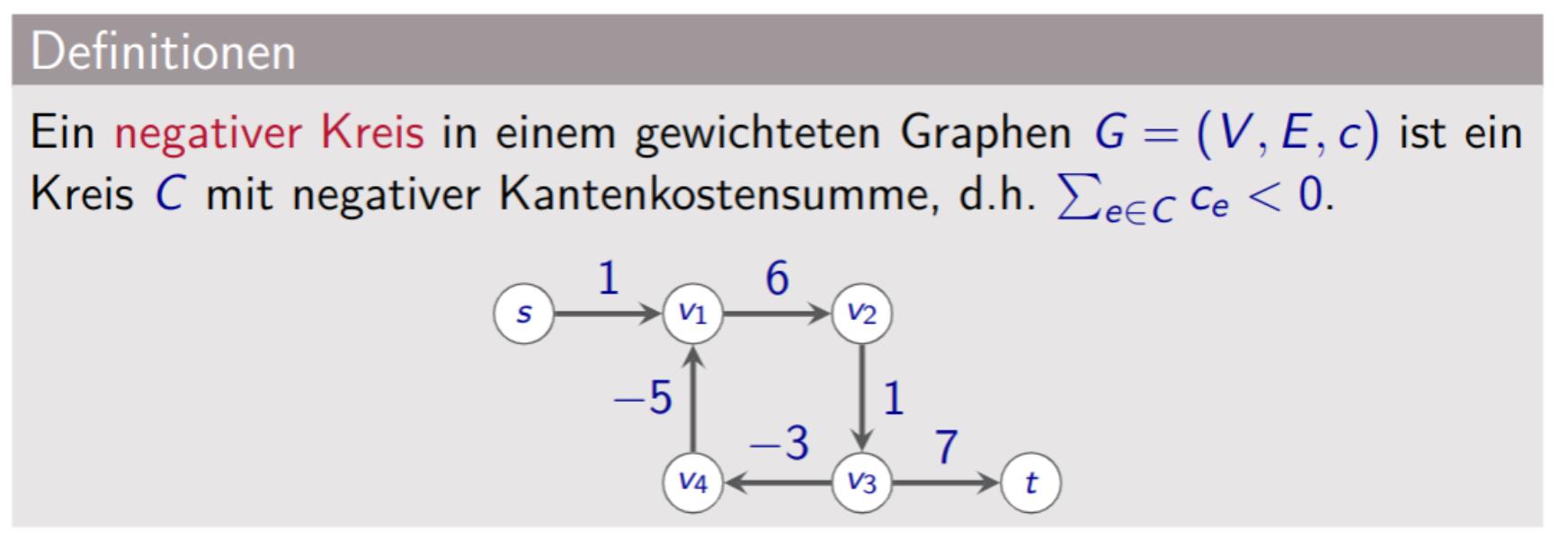 Negative Kreise ⇒ Annahme für das Kürzeste-Wege Problem: Graph G enthält keine negativen Kreise.Link to original Definition