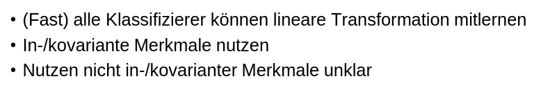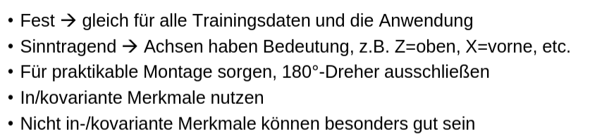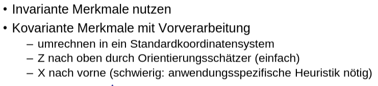 fest & sinntragend fest wechselt zwischen Nutzungen ändert sich ständig Invariante Merkmale x x x x Kovariante Merkmale x x Merkmale die beides nicht sind. x Auf ein sinntragendes festes Koordinatensystem umrechnen. x x x fest & sinntragend