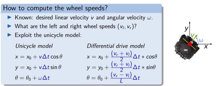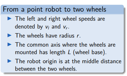 From a point robot to two wheels Instead of a point robot, the TurtleBot is now modeled as a robot with: