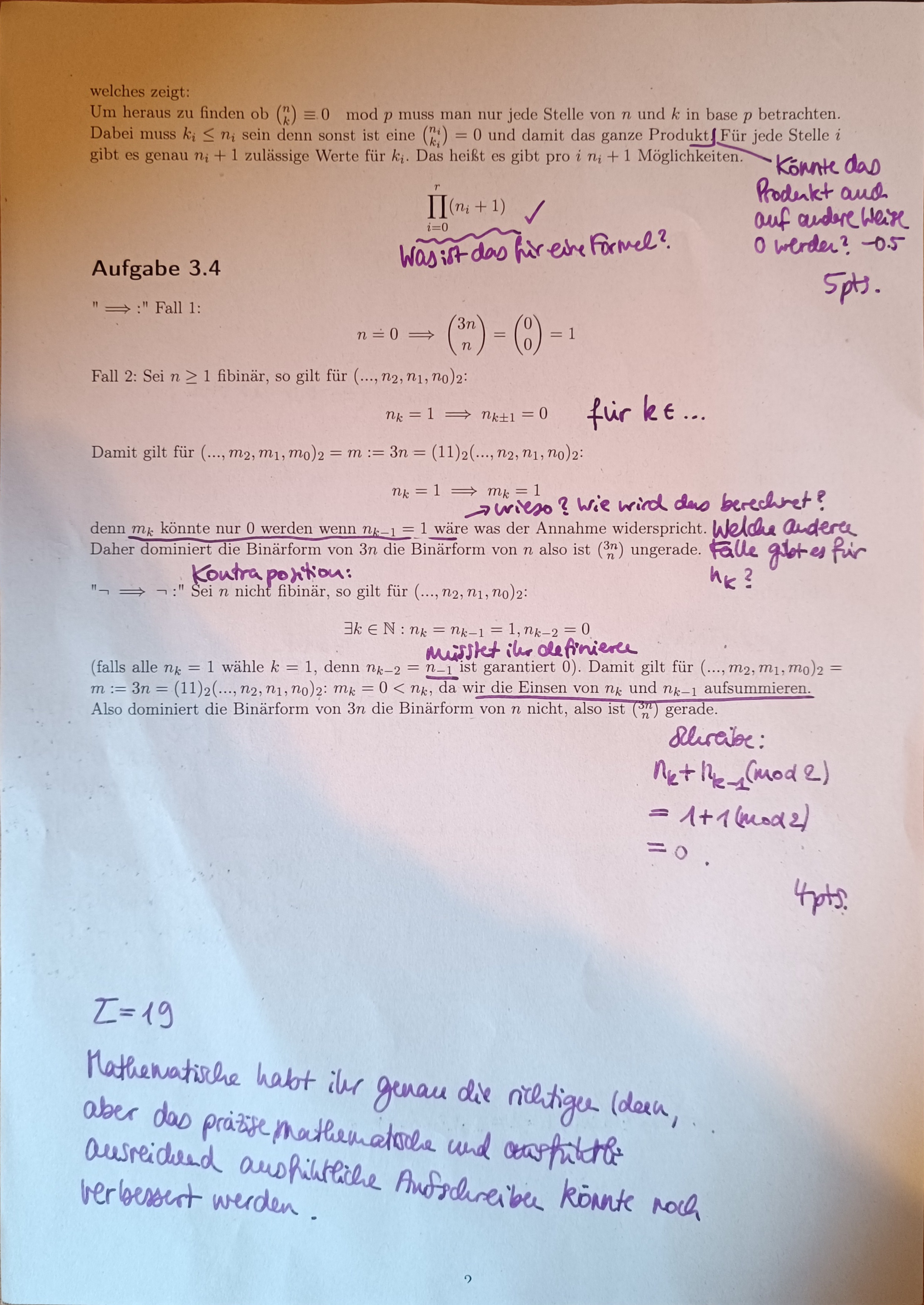 \binom{n}{k} \mod p = 0 \Rightarrow \prod_{i=0}^{r} \binom{n_{i}}{k_{i}} \mod p = 0