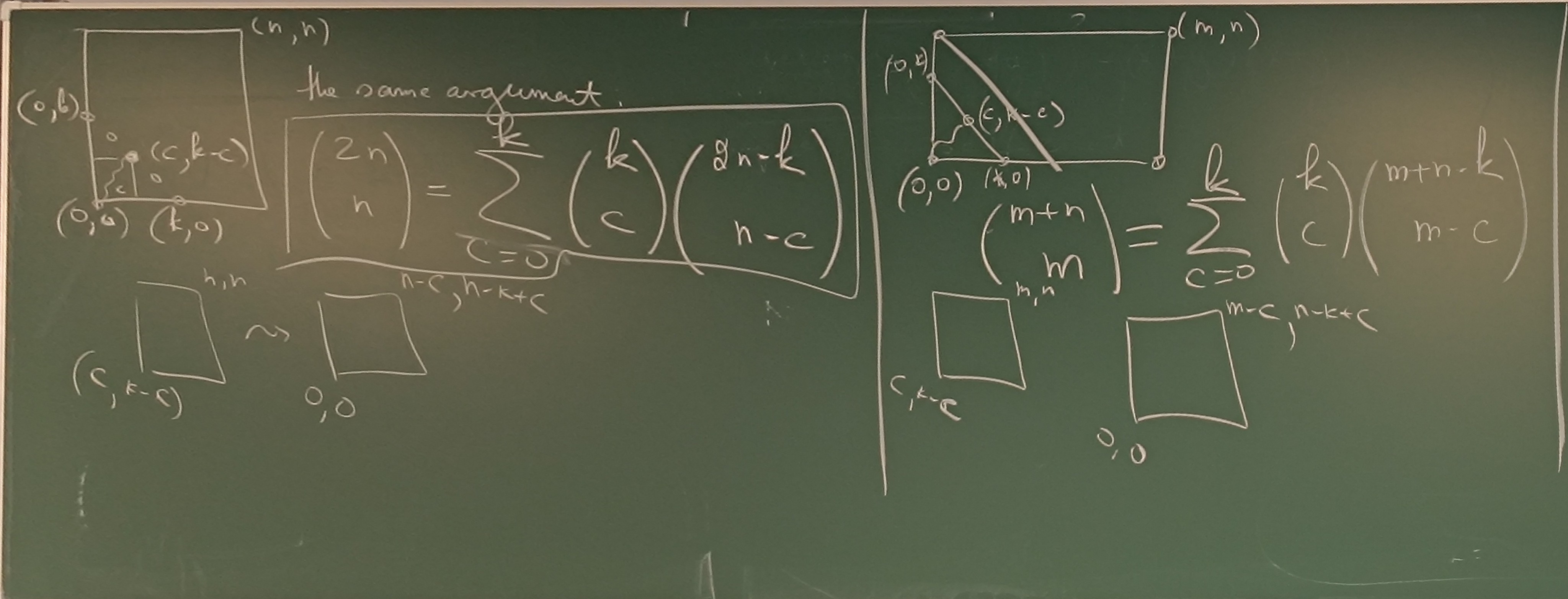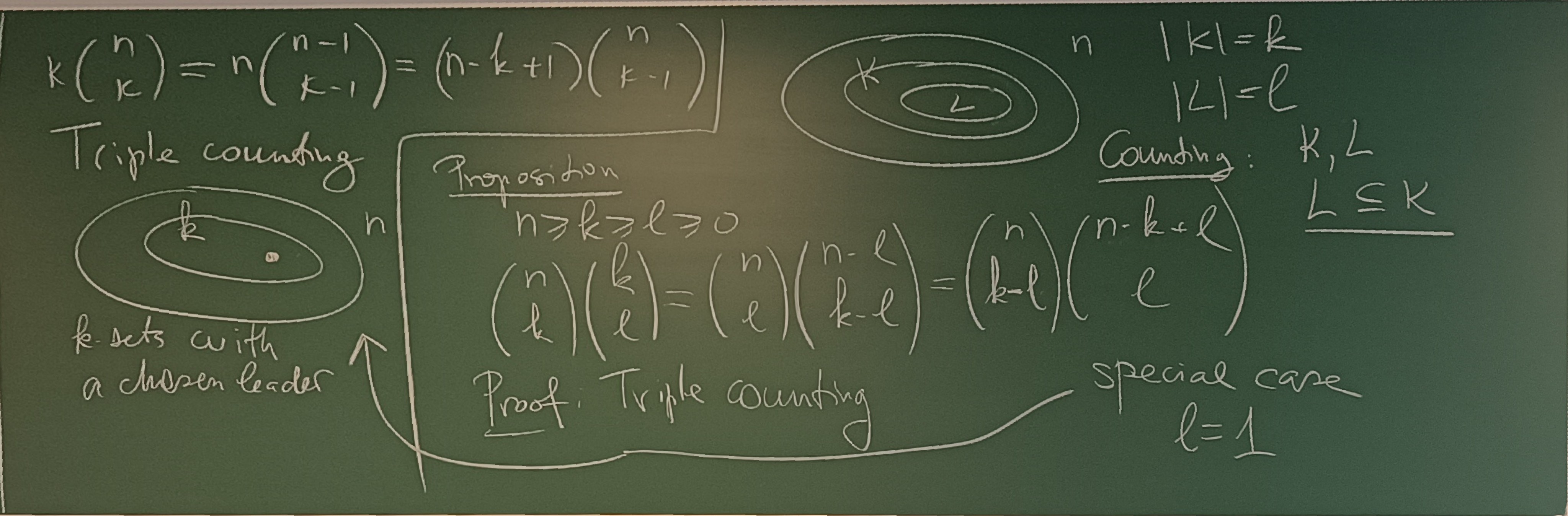Tripple counting Pascaltriangle Vandermodes identity Binomischer Lehrsatz Beispiel combinatorial identities Proof combinatorial identites with boxes multinomial coeffcients multinomial therom