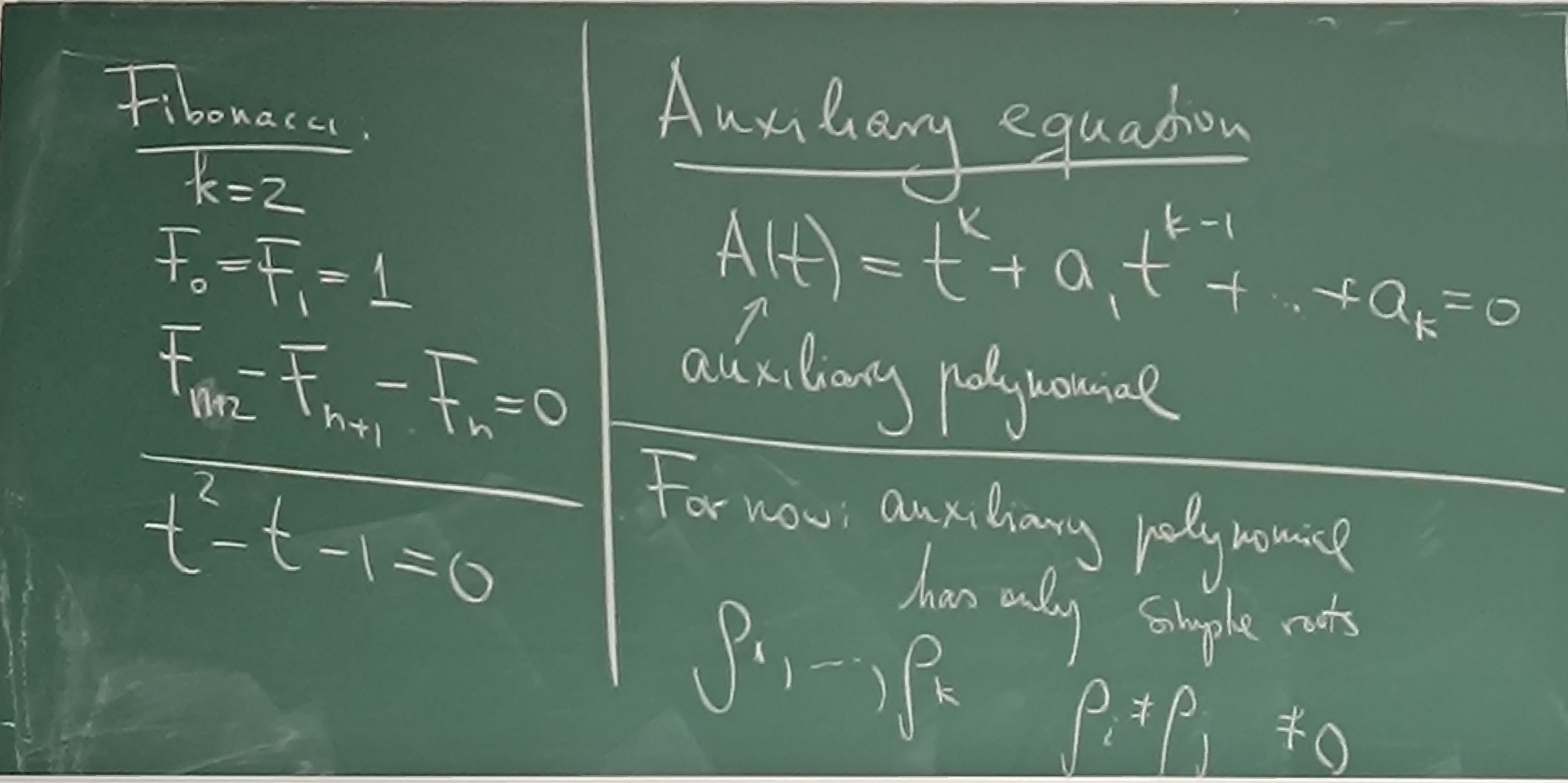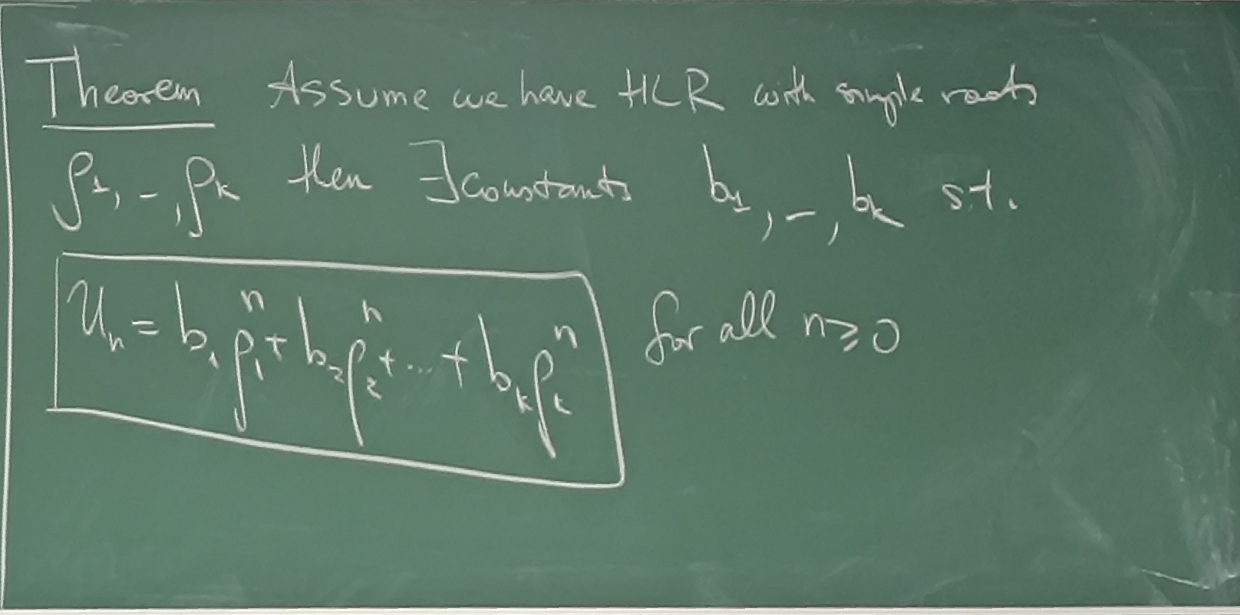 Homogenous linear recursion with simple roots