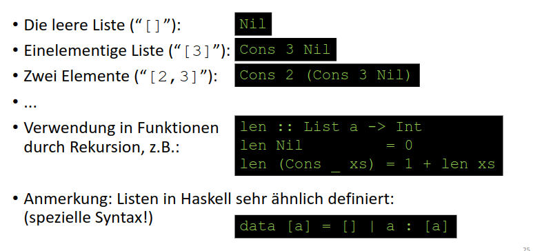 Haskell Listen-Opartionen Haskell Listen Patterns Haskell List Comprehensions