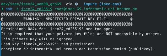 Zugriffsrechte 600, um von ssh akzeptiert zu werden. Einen privaten