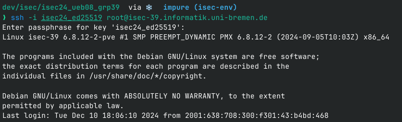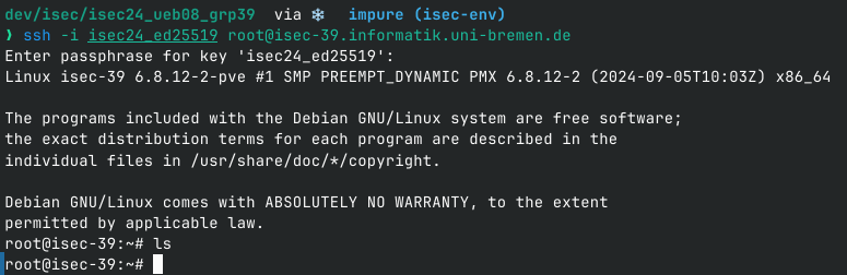 Passphrase ist isec24. Achtung: Der private Schlüssel benötigt die