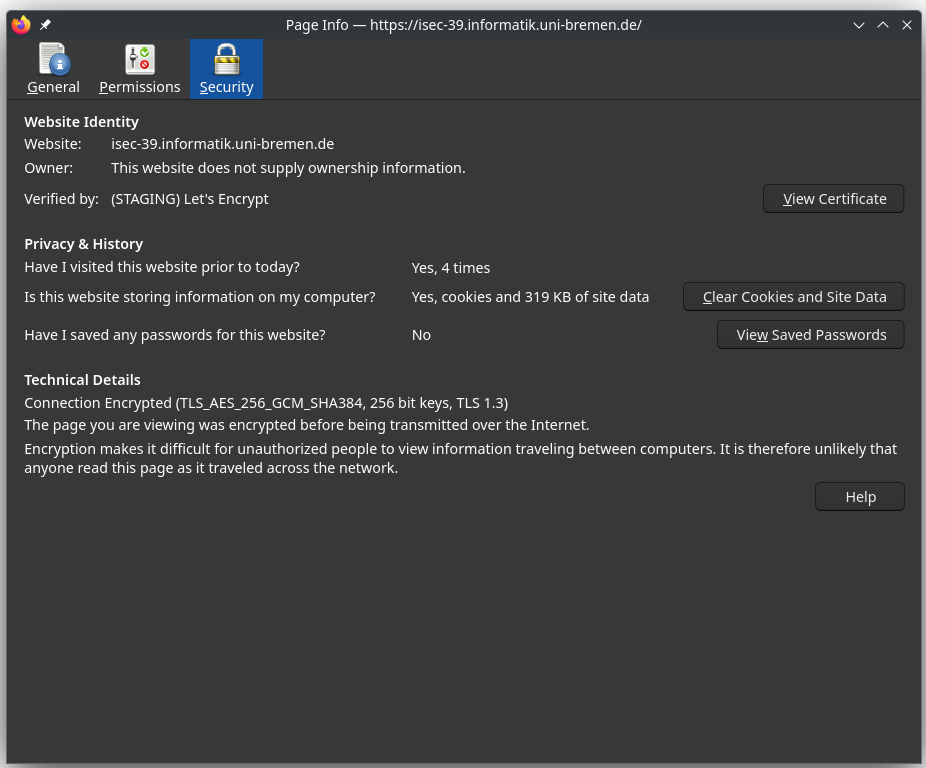 Euer Zertifikat könnt Ihr Euch mit Eurem Browser anschauen. Welche