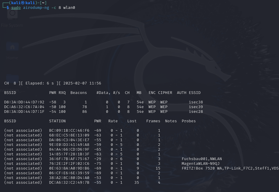 Access Points und Stationen sehen. Verwendet dazu in kali das Kommando