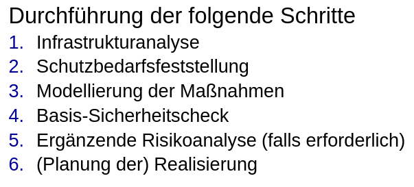 Standartmaßnahmen zur Umsetzung grundlegender Schutzkonzepte für z.B.