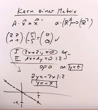 Sei eine Abbildung dann ist der Kern alle Funktionen wo die Ergebnissmenge gleich 0 ist.