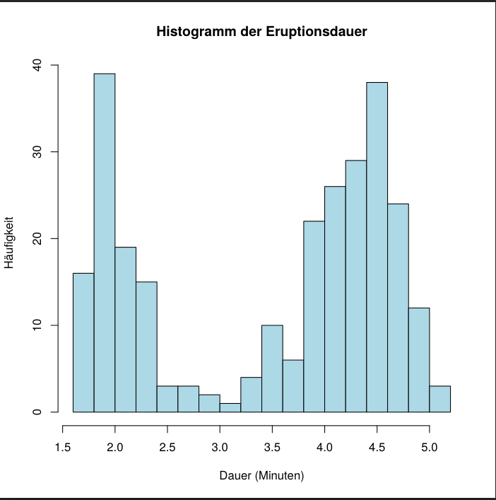 xlab = "Dauer (Minuten)", ylab = "Häufigkeit")