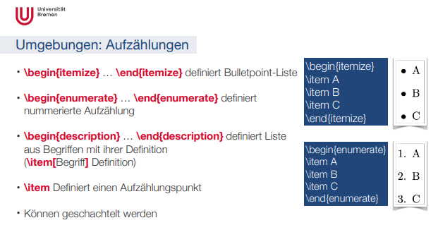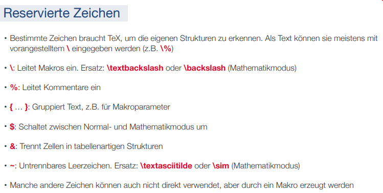 \ Leitet Markros ein. (\textbackslash oder \backslash)