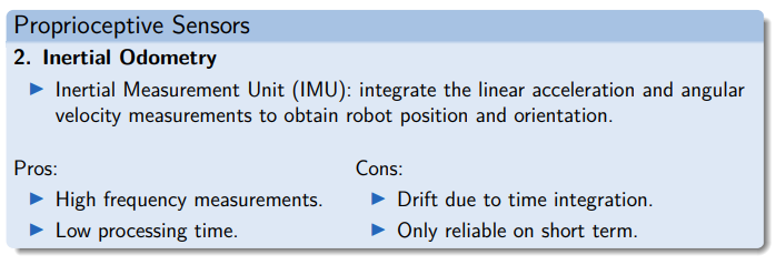- Inertial Measurement Unit (IMU) → Inertial odometry