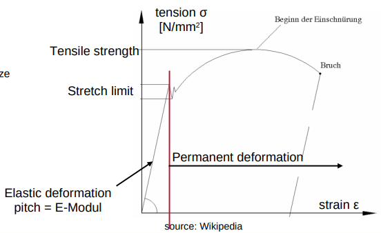 Modulus of elasticity [N/mm2 ] = tension [N/mm2 ] / elongation