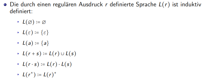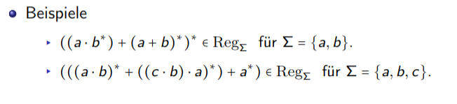 Die Menge der regulären Ausdrücke über ist induktiv definiert: