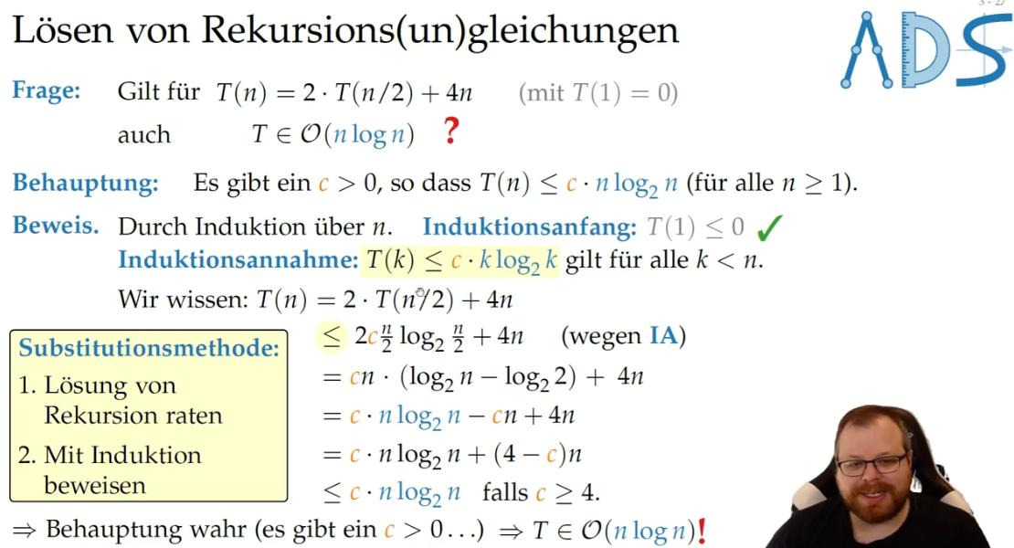 Substitionsmethode Meistermethode MastertheoremNur nutzbar wenn: T(n)=aT(bn)+f(n)a≥1,b>1 siehe Rekusiongleichungen LaufzeitLink to original