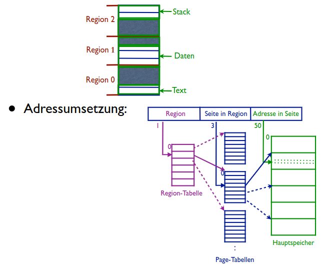 Feste Seiten-Größen ⇒ keine logische Aufteilung des Adressraums