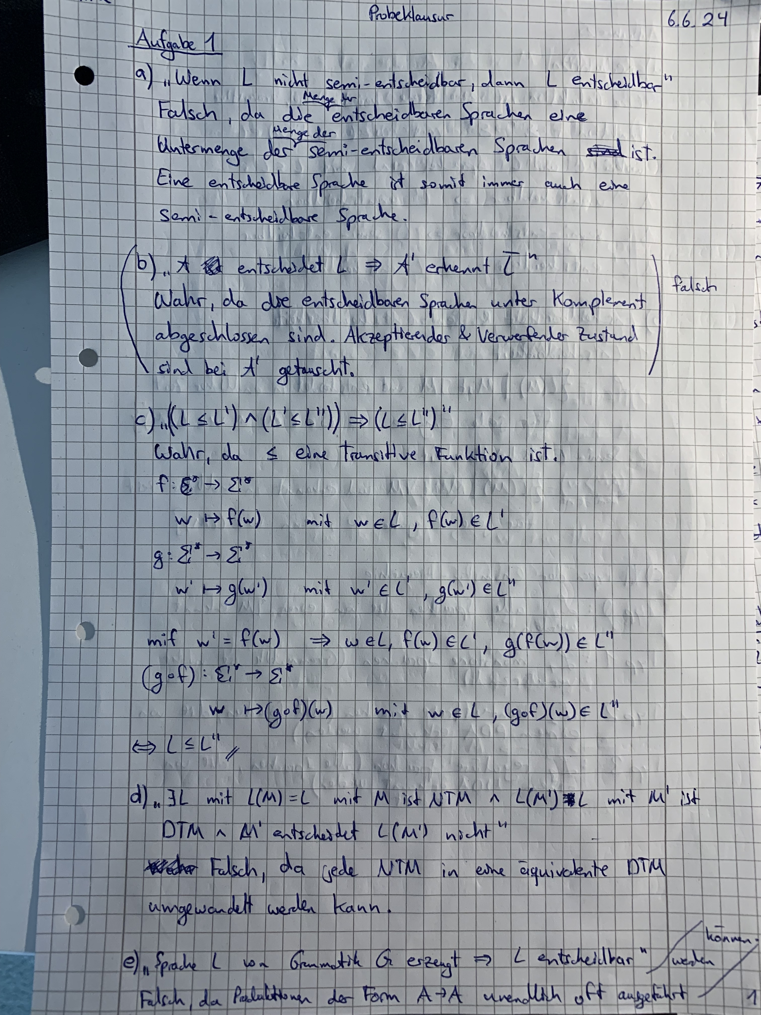 Ja aber vielleicht noch ein Satz warum das heißt das sie nicht entschidbar ist.