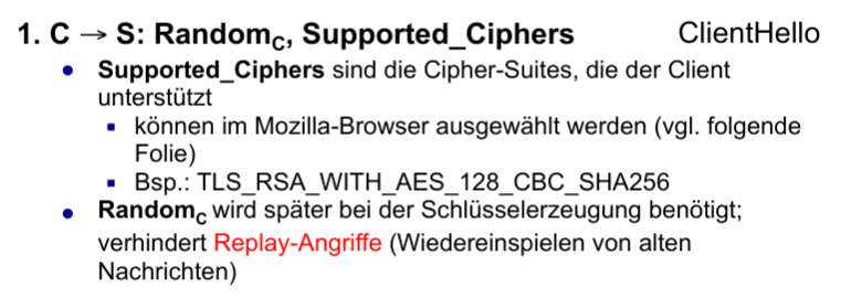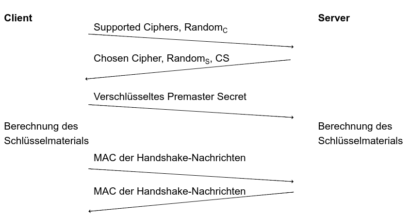 ⇒ Server authentisiert sich durch den nachweis des privaten Schlüssel.