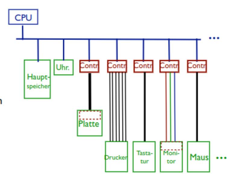 • CPU über Bus mit Vielzahl von “Geräten” verbunden.