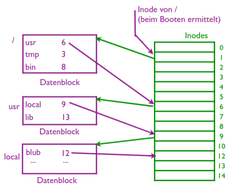 - Inodes: Ablage der Verwaltungsinformationen: