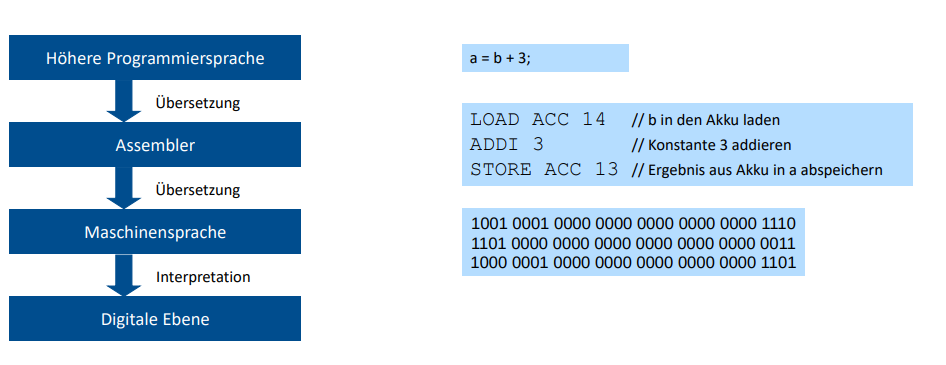 Jede Ebene (mit Ausnahme der untersten) ist ein „virtueller Rechner“ zu der eine Sprache gehört.