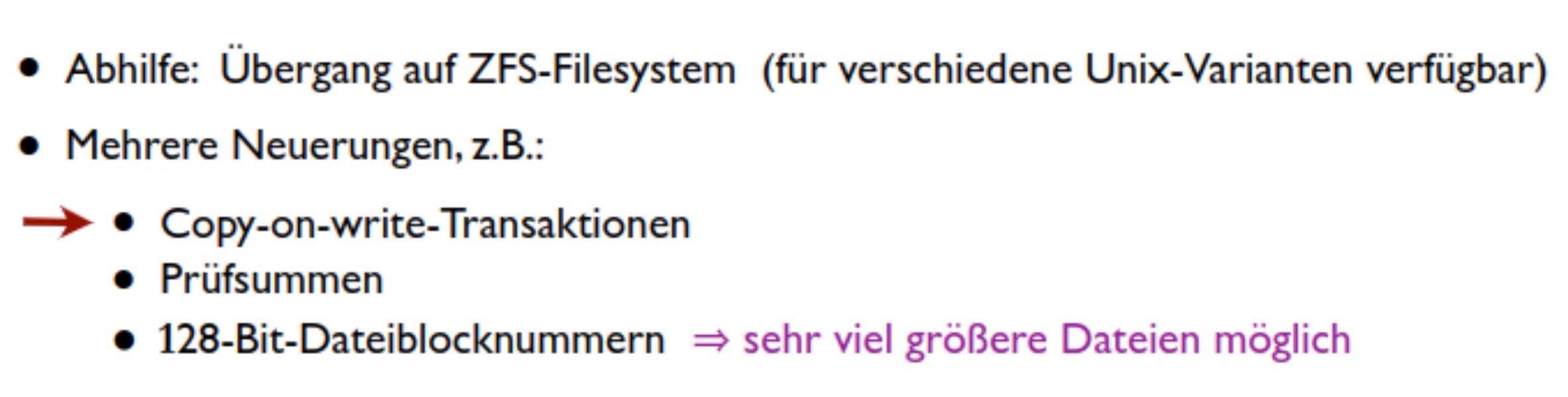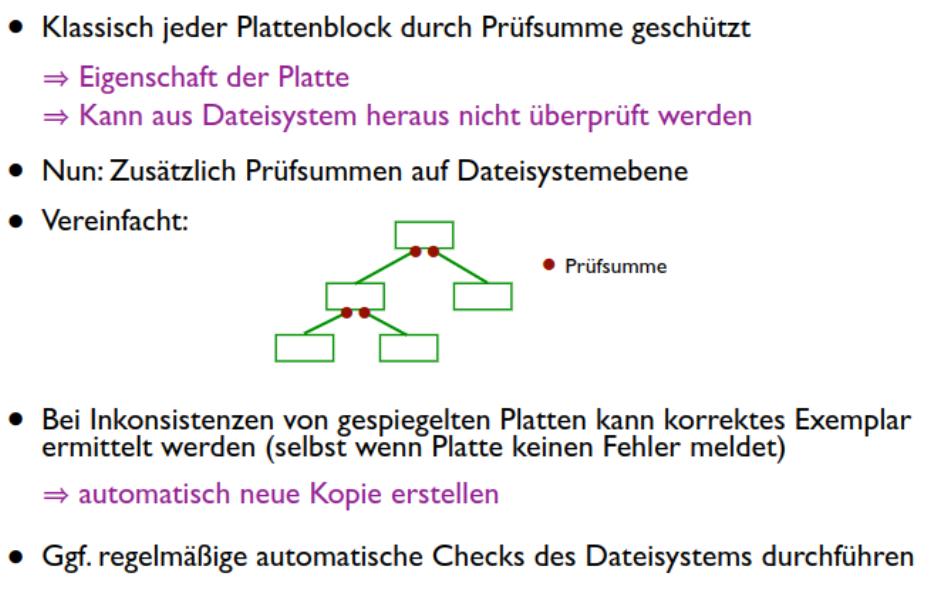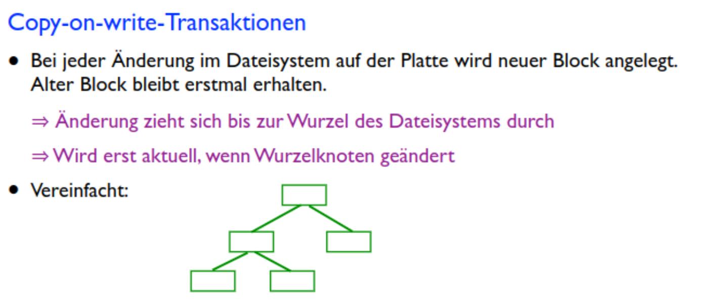 Bei Systemzusammenbruch alte Version noch verfügbar (Transaktionsorientierung) Bei Bedarf alte Version auch noch länger verfügbar (Snapshot) Nach einigen Änderungsrunden alte Versionen löschen Prüfsummen