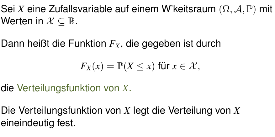 Die Verteilung einer diskreten Zufallsvariable Die Verteilungsfunktion einer Zufallsvariable Stochastische Unabhängigkeit von Zufallsvariablen