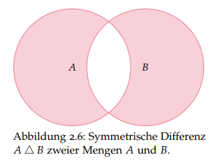 Link to originalDie symmetrische Differnz zweier Mengen A und B ist die Menge aller Elemente von , welche nicht in liegen.