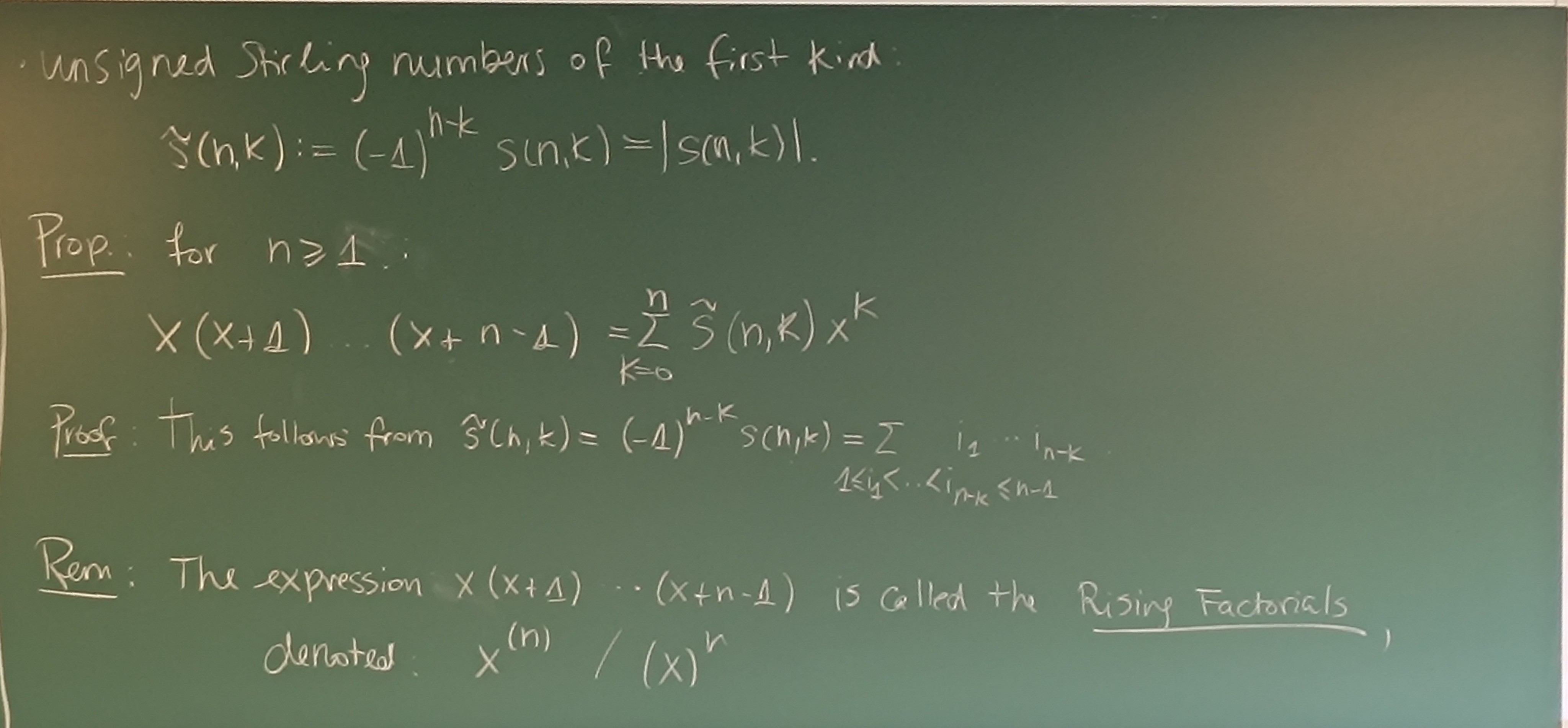 unsigned Stirling Numbers First Kind