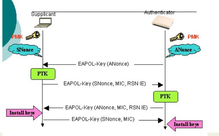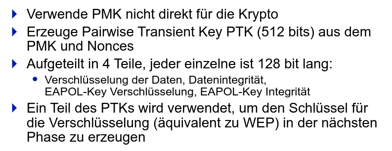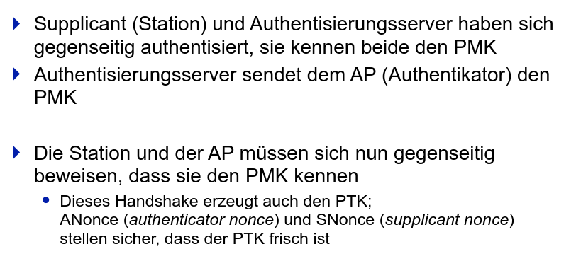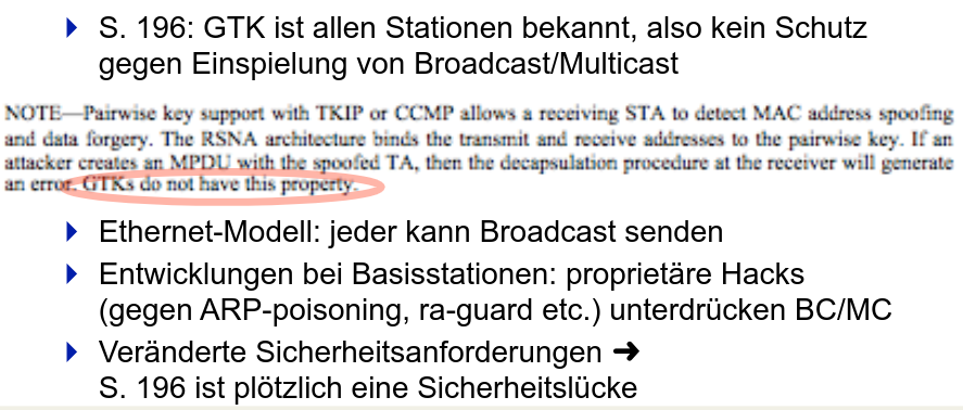 Extensible Authentication Protocol 802.1x Authentisierung + PMK 4 Way Handshake und PTK Key Re-installment AttaCKs Gruppenschlüsse Hole 196