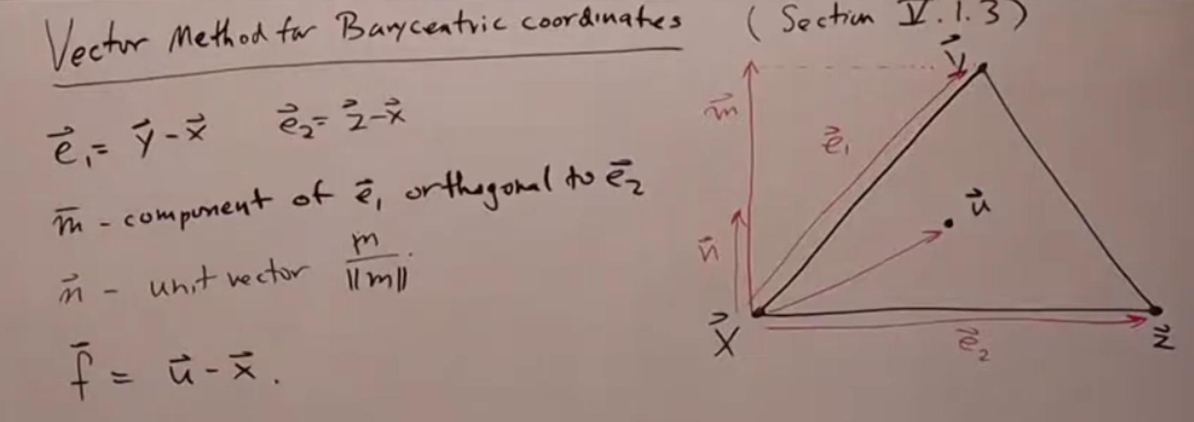 Triangle T has Points X, Y, Z Let Point P=αX βY γZ (α,β,γ) are the barycentric Coordinates of P 0≤α,β,γ≤1 α+β+γ=1 Calculating Barycentric Coordinates