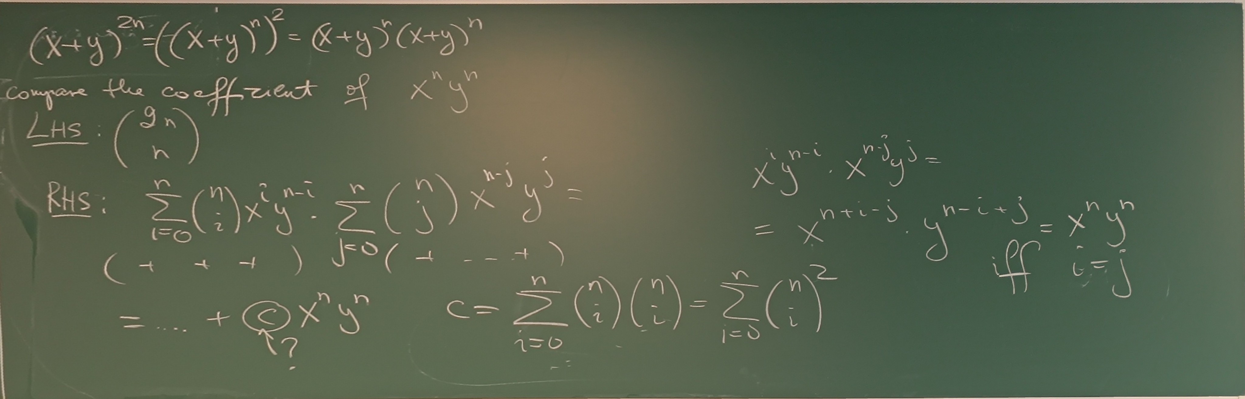 Tripple counting Pascaltriangle Vandermodes identity Binomischer Lehrsatz Beispiel combinatorial identities Proof combinatorial identites with boxes multinomial coeffcients multinomial therom