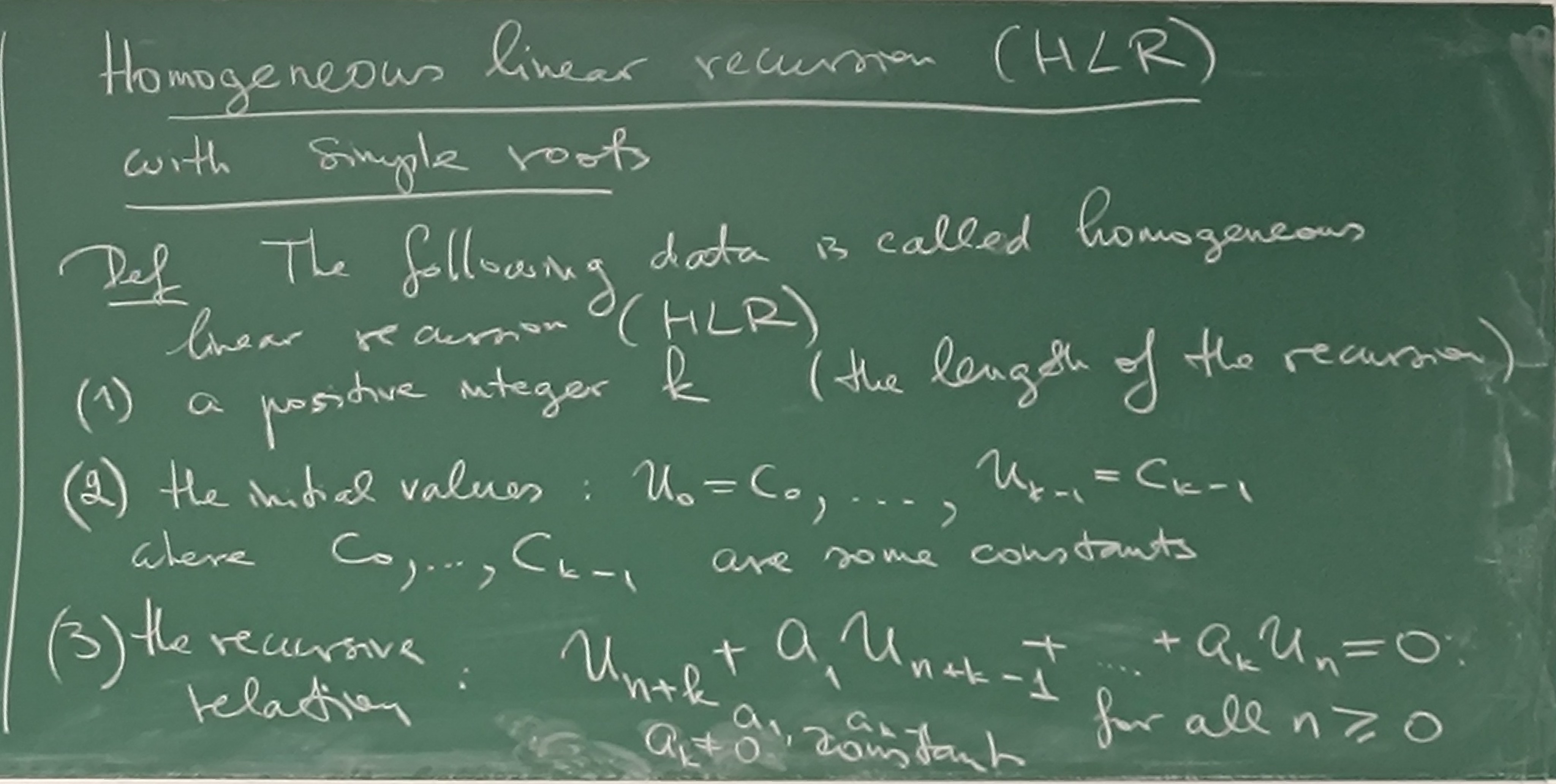 Homogenous linear recursion with simple roots