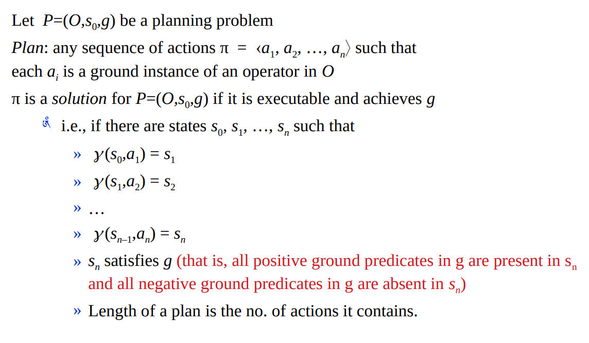 A plan is a linearly ordered sequence of actions (a1 , a2 , … an ).