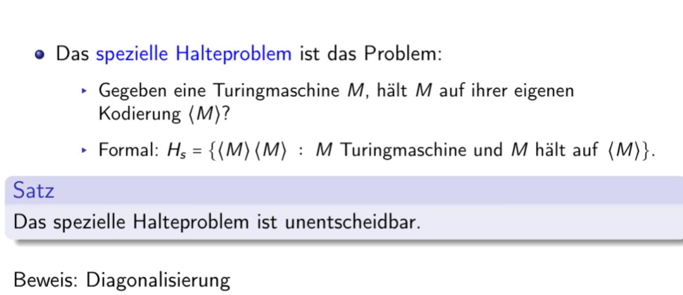 siehe: Diagonalisierung Halteproblem spezielles Halteproblem zu Halteproblem